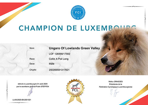 MISE A JOUR DE LA PAGE CHAMPIONS AVEC L'AJOUT DU TITRE DE CHAMPION DE LUXEMBOURG POUR "UNGARO OF LOWLANDS GREEN VALLEY"